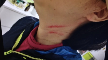 事后,羅小姐的母親張女士很快打電話報了警。張女士今年52歲,女兒提到母親的傷勢非常心疼,“我母親頭部腫起,脖子上有三處抓痕(有出血),手指也被抓傷,之后幾天右側(cè)腰部和右膝都感覺疼痛。”