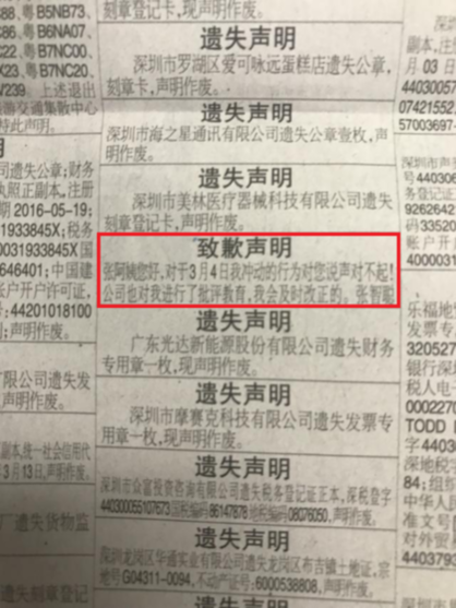 報紙分類信息中的致歉聲明(第四條)