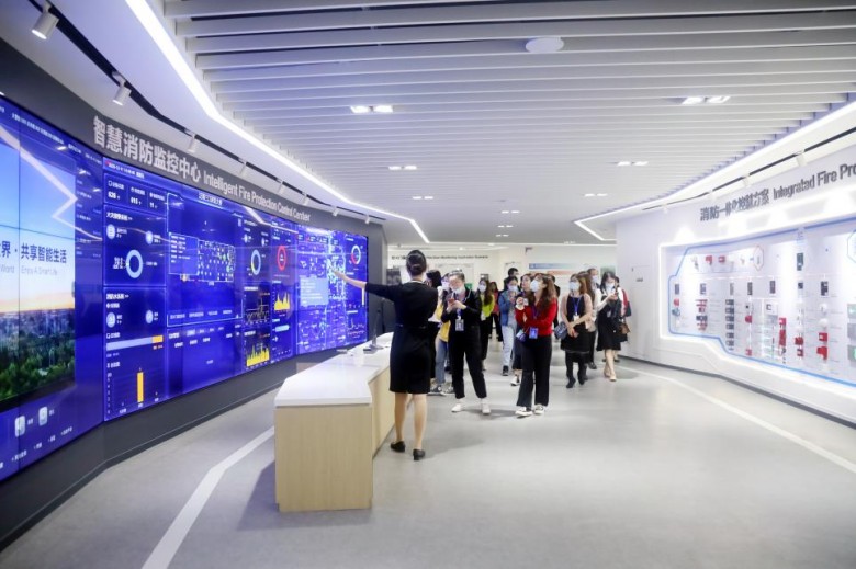 在展廳講解員的帶領(lǐng)下,到訪者首先參觀了泛海三江的企業(yè)展廳,對泛海三江的企業(yè)發(fā)展歷程及整體業(yè)務情況作基礎(chǔ)的了解與認識。作為深圳市高新技術(shù)產(chǎn)業(yè)協(xié)會的會員單位之一,泛海三江創(chuàng)立于1985年,是中國現(xiàn)代消防電子體系創(chuàng)始企業(yè)之一,先后被主管部門認定為“消防與應急救援國家工程實驗室”共建單位、“廣東省消防與應急救援工程技術(shù)研究中心”、“南山區(qū)智能消防工程技術(shù)研究中心”等。