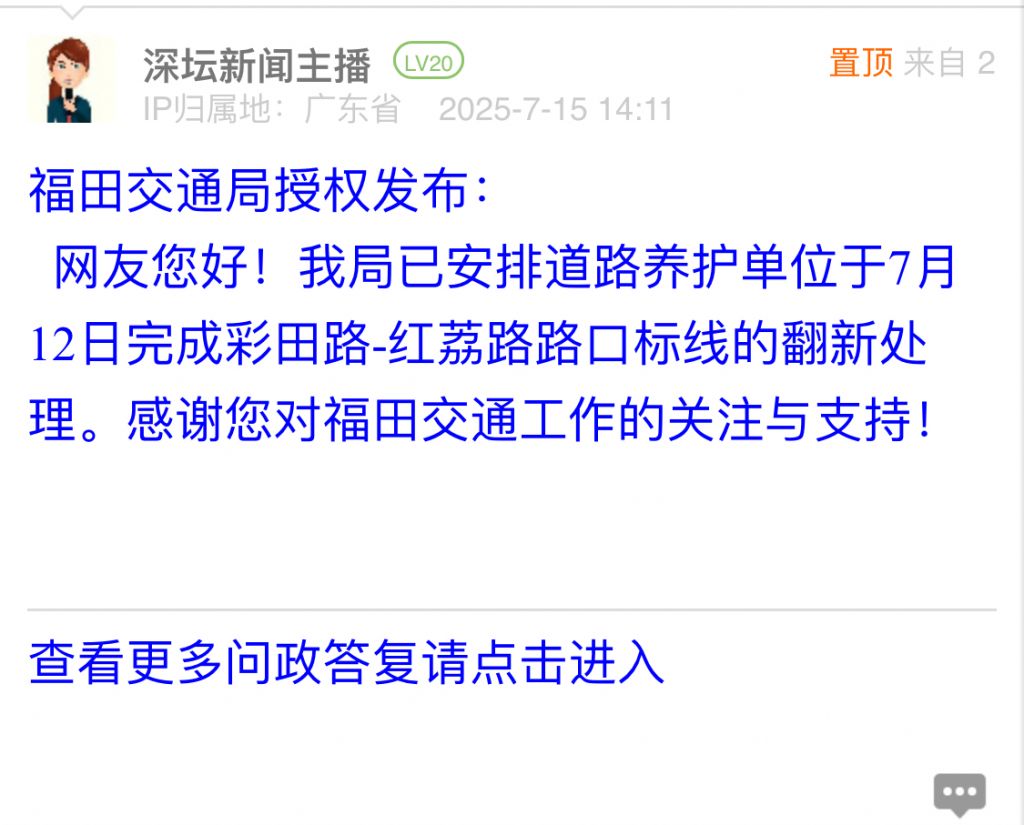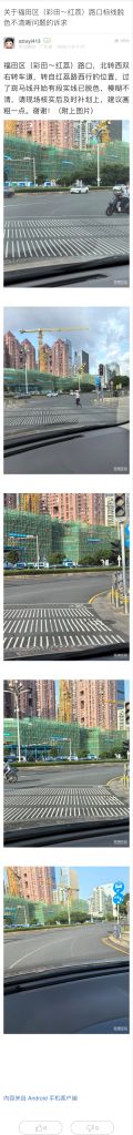 9. 帖文《關(guān)于福田區(qū)(彩田~紅荔)路口標線脫色不清晰問題的訴求》