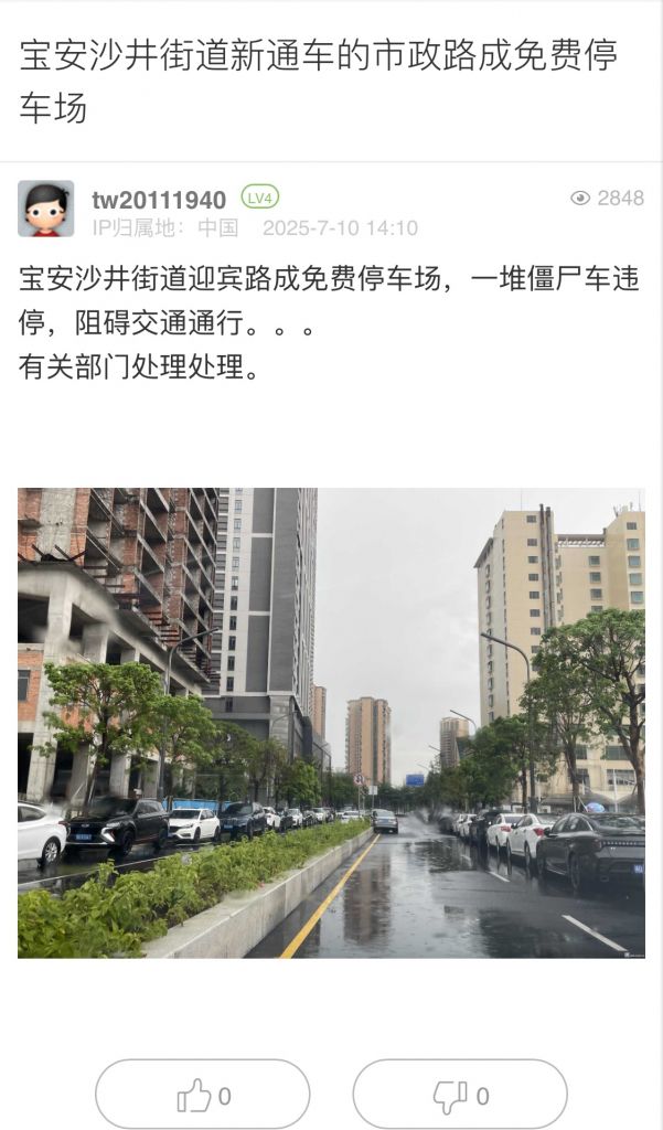 19. 帖文《羅湖區(qū)樂園路設(shè)置的即停即走車位非常不合理!嚴重影響片區(qū)交通秩序》