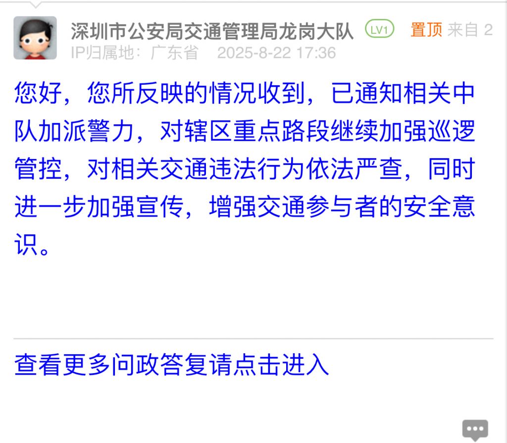 據(jù)統(tǒng)計,2025年8月18日-2025年8月24日,網(wǎng)友在深圳論壇發(fā)布問政類帖文共40篇,得到相關(guān)單位正式回應(yīng)的帖文數(shù)為40篇,本期簡報回應(yīng)速度最快的單位:市公安局交通管理局寶安大隊、市公安局交通管理局羅湖大隊、羅湖區(qū)翠竹街道辦事處、市生態(tài)環(huán)境局寶安管理局、龍崗區(qū)城市管理和綜合執(zhí)法局。