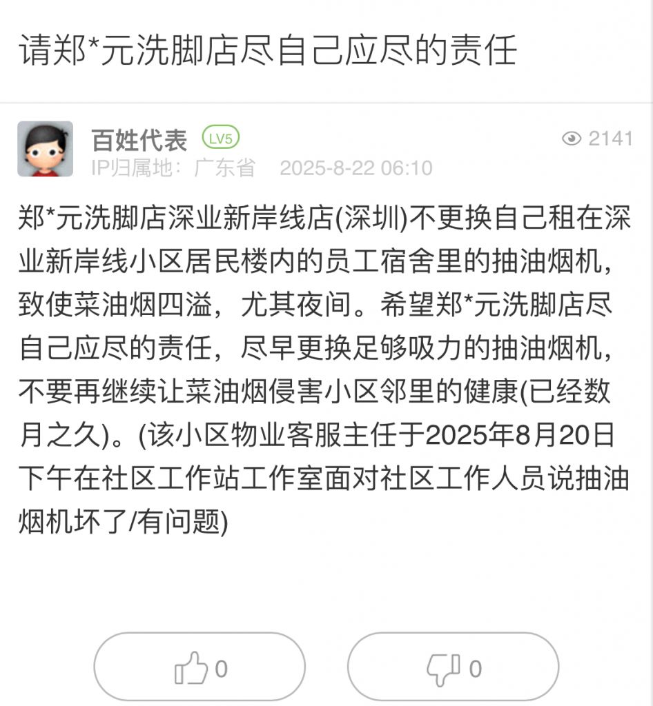 接報后,海裕社區(qū)工作人員走訪物業(yè)管理處了解情況。據(jù)物業(yè)管理處反映,該業(yè)主因家中存在嚴(yán)重油煙味要求物業(yè)對所述房屋油煙問題進(jìn)行排查并處理。所述房屋租戶表示近期已關(guān)緊門窗且不做飯,期間仍反饋有油煙味,認(rèn)為此油煙問題不是其導(dǎo)致的,懷疑是物業(yè)油煙排放管道問題。物業(yè)管理處相關(guān)負(fù)責(zé)人表示,此前已安排物業(yè)工作人員至所述房屋家中查看了油煙管道情況,發(fā)現(xiàn)該戶油煙機內(nèi)部及管道接口處存在大量油污,未及時清理,存在明顯使用痕跡和油漬積累,可能是導(dǎo)致油煙反味的原因之一,已計劃于8月30日前安排專業(yè)的清潔人員,前往所述房屋對抽油煙機及管道接口進(jìn)行徹底的專業(yè)清洗維護(hù),以從根本上消除此處的油污隱患。海裕社區(qū)將持續(xù)跟進(jìn)此事件的整改進(jìn)度,督促物業(yè)公司按時完成專業(yè)清洗工作,關(guān)注清洗效果。同時,建議物業(yè)公司對整棟樓的公共油煙管道進(jìn)行一次全面排查,以確保系統(tǒng)正常運行,徹底解決油煙擾民問題,保障全體住戶的居住環(huán)境。